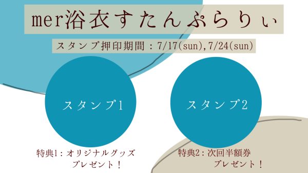 1日ご参加につき1スタンプ!2企画ご参加の方には次回半額券をプレゼントいたします♨︎ 7/17(SUN)〜京都編〜京都市国際交流会館 ▲CHECK 7/24(SUN)〜愛知編〜ゲストハウスますきち&古民家久米邸 ▲CHECK